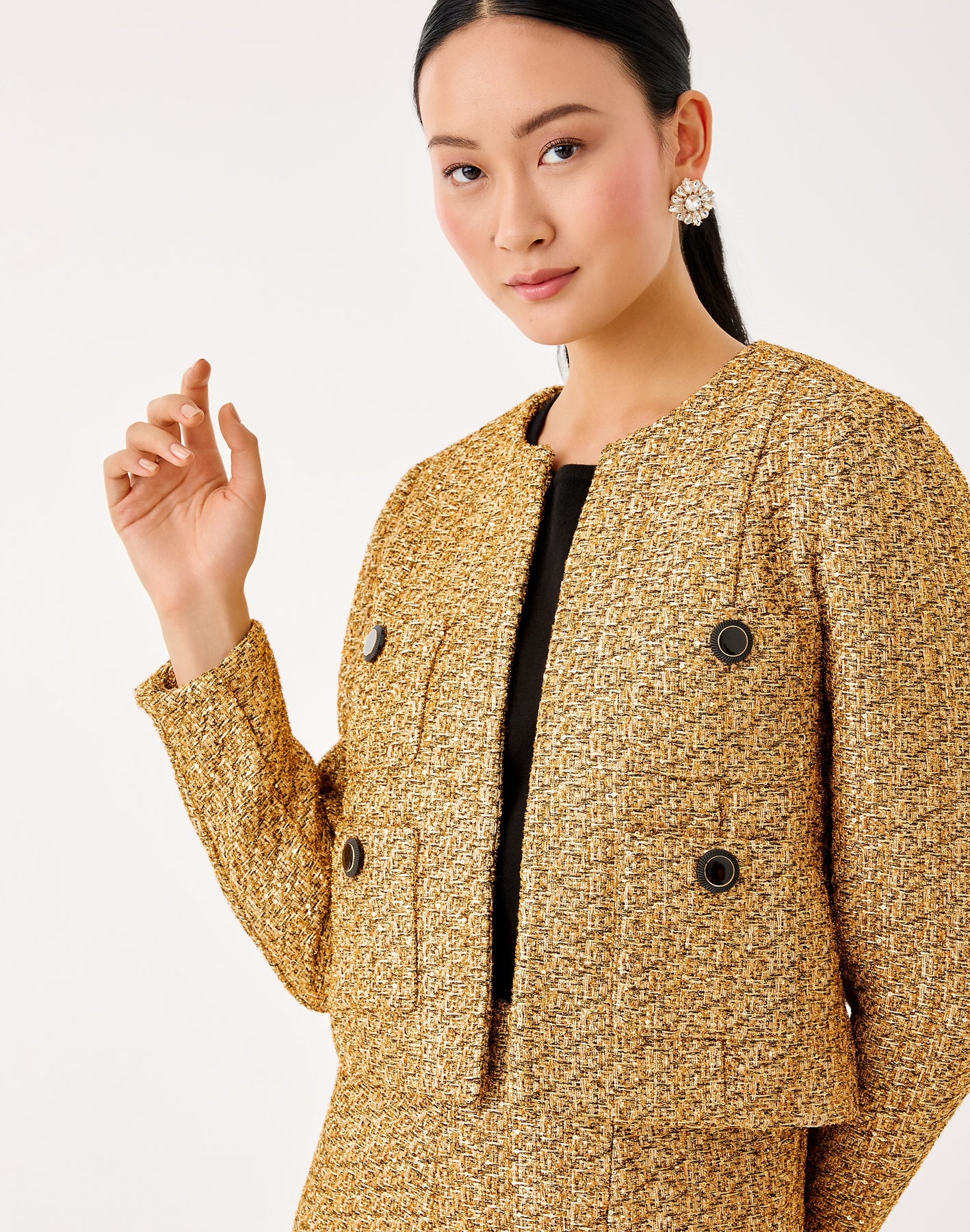 Rohana Boucle Jacket - Gold Metallic Golden Glow