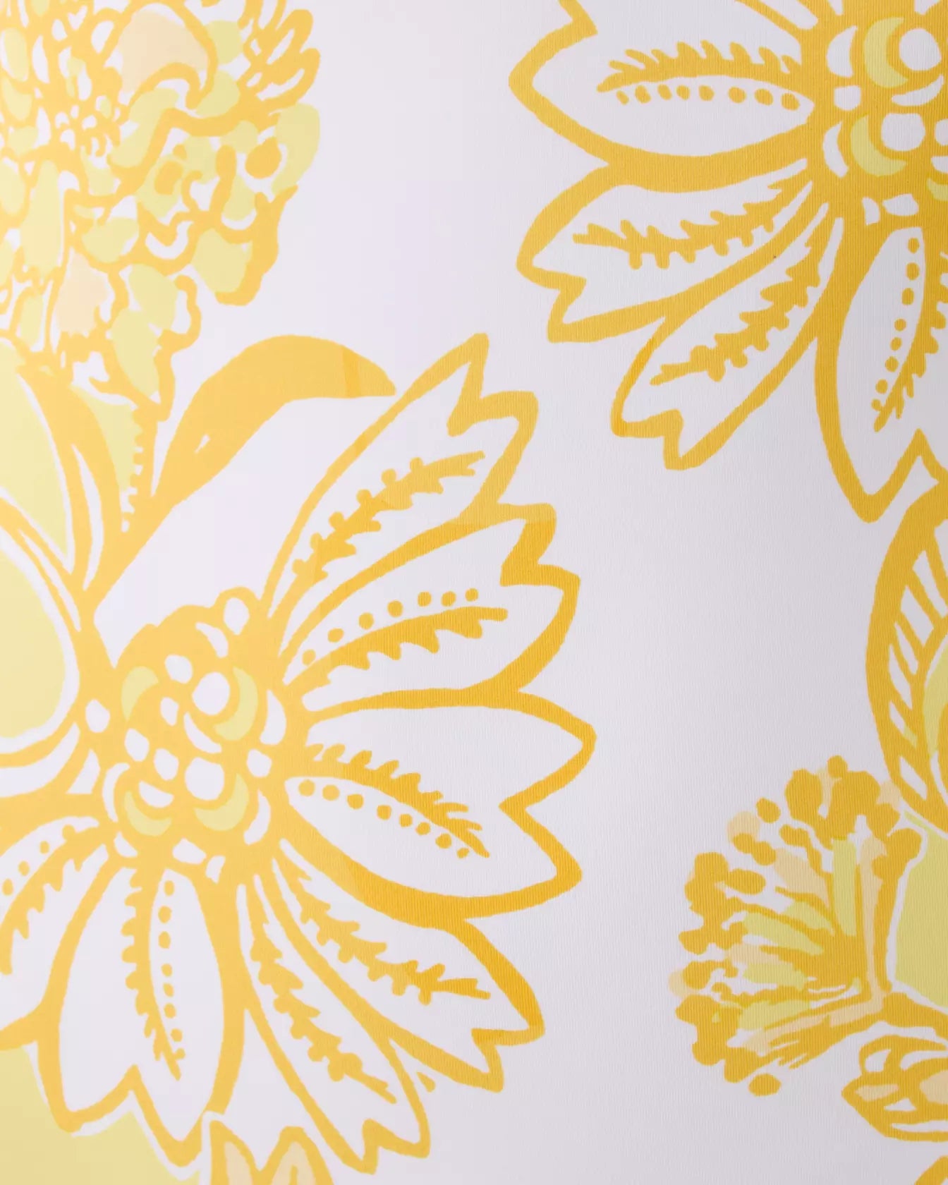 Bright and chic, this yellow floral one-piece swimsuit features a plunging V-neck with V-wire detail, adjustable straps, and an engineered sunflower-inspired print that flatters every angle.