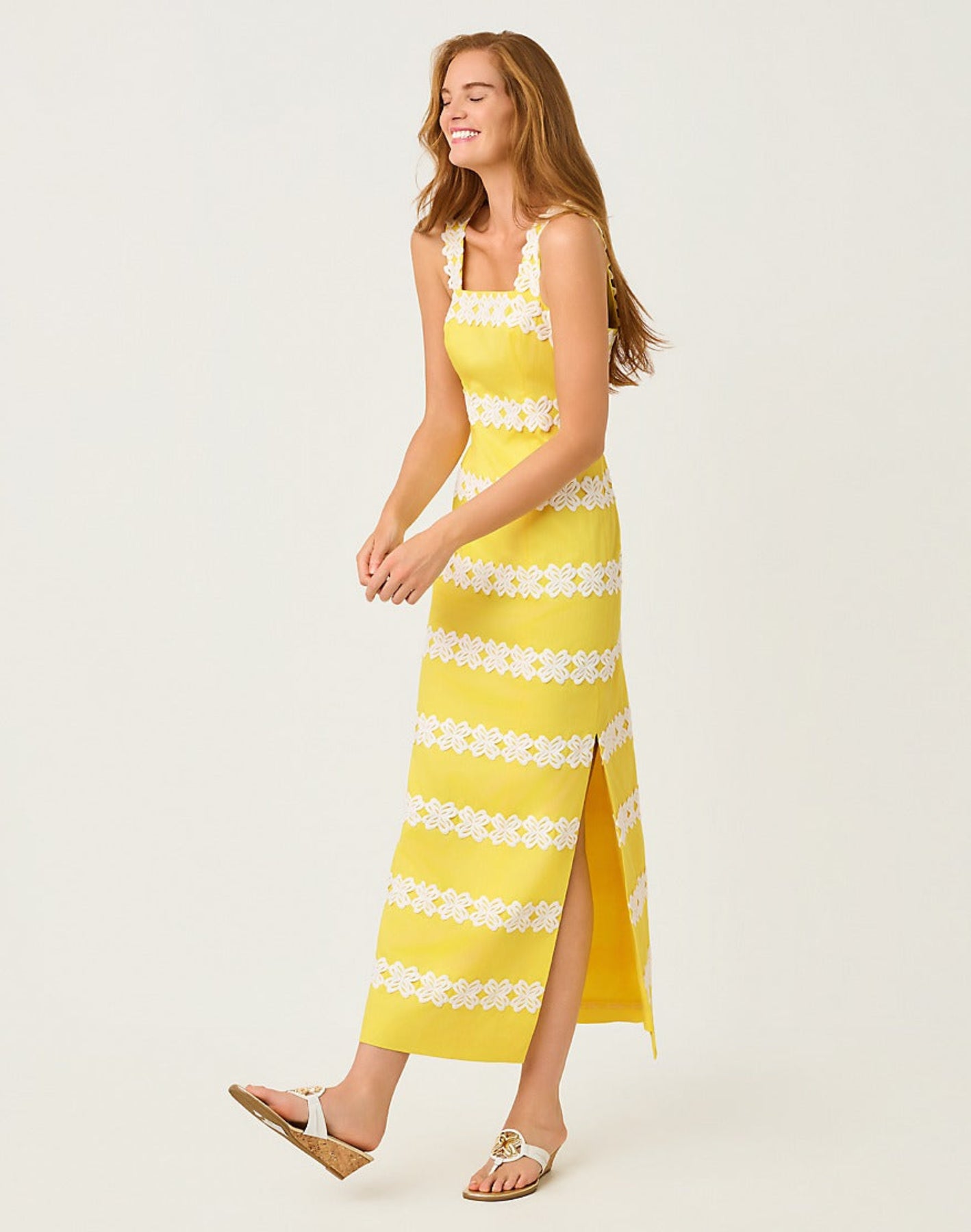 The Davis Maxi Dress in Estelle Yellow is a timeless wardrobe essential that effortlessly transitions from day to evening. Crafted with a flowing silhouette, this maxi dress features a flattering cut that skims the body while providing comfortable movement. The vibrant yellow hue brings warmth and brightness to any occasion, whether you're dressing up for a special event or keeping it casual for everyday wear. Perfect for creating elegant looks with minimal effort, this dress pairs beautifully with sandals, heels, or sneakers depending on your style. A versatile piece that works year-round, the Davis Maxi Dress is designed to become a go-to favorite in your collection.