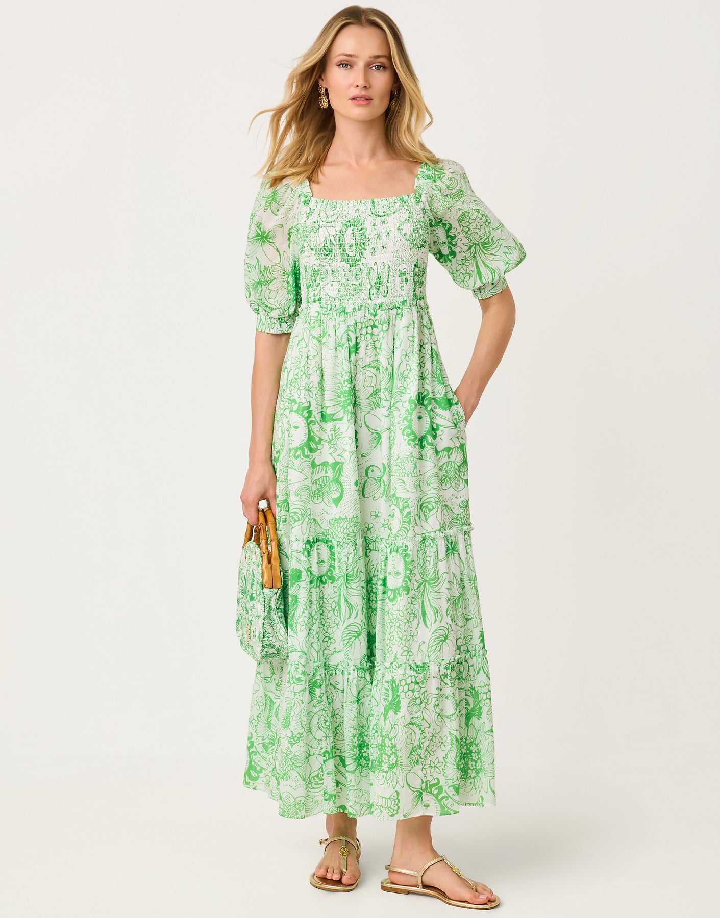 Hadly Short Sleeve Smocked Dress - Putting Green Fleur De Lilly