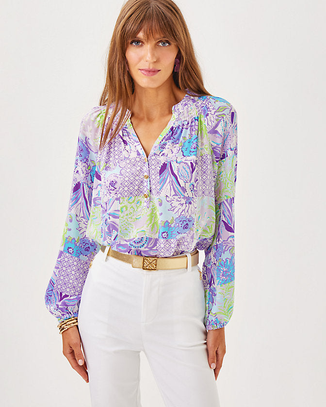 Noraleen Silk Top - Bonaire Blue Fish Clip Chiffon