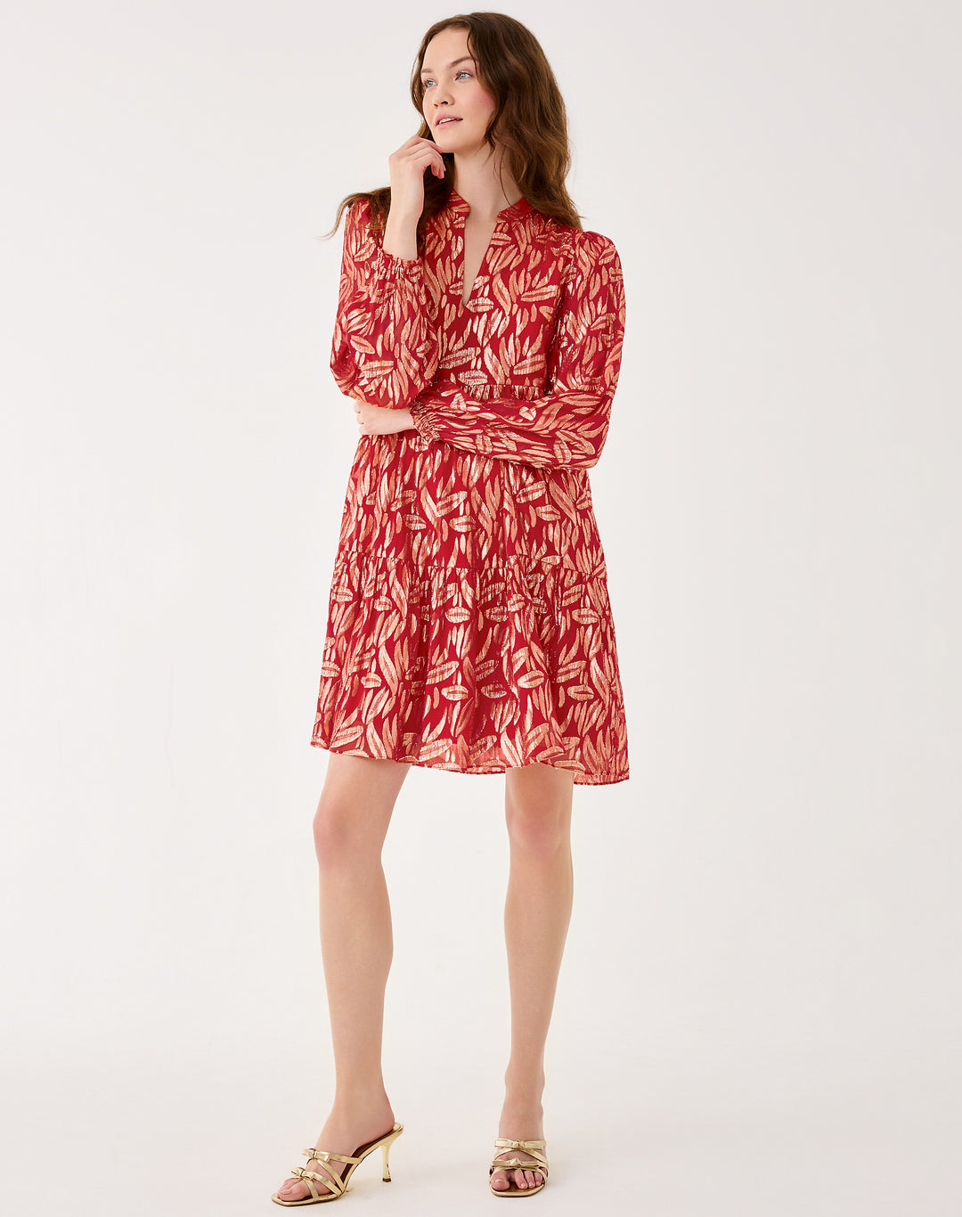Cornellia Silk Dress - Cranberry Red Leafy Babe